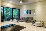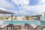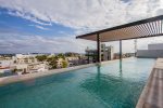 Perfectly located in the heart of downtown Playa del Carmen inside the new and luxurious Arenis condo building. The rooftop pool is incredible, with a sky lounge and bar area. Perfect for a pool day with plenty of sun lounging space and relaxing sofa lounge seating. You can catch some great views up there too. Plus 24-hr building security, a business center, a gym, and a free underground parking spot to avoid all the new parking meters in town.