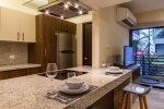 - A fully-equipped modern kitchen w/ breakfast bar for 2 at the granite-kitchen countertop